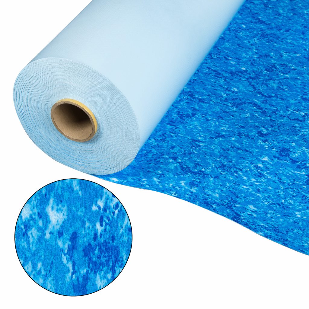 Лайнер Cefil Nesy з малюнком синього мармуру. Призначений для гідроізоляції та облицювання внутрішньої поверхні чаші басейну. Зовнішній шар лайнера має лакове захисне покриття, що блокує вплив прямих УФ-променів, хімії та косметичних засобів. Антибактеріальне просочення захищає покриття від утворення цвілі та грибків. Легко та швидко монтується. Термін служби більш ніж 10 років. Площа лайнеру в рулоні становить 51.66 м². Ціна вказана за 1 м².