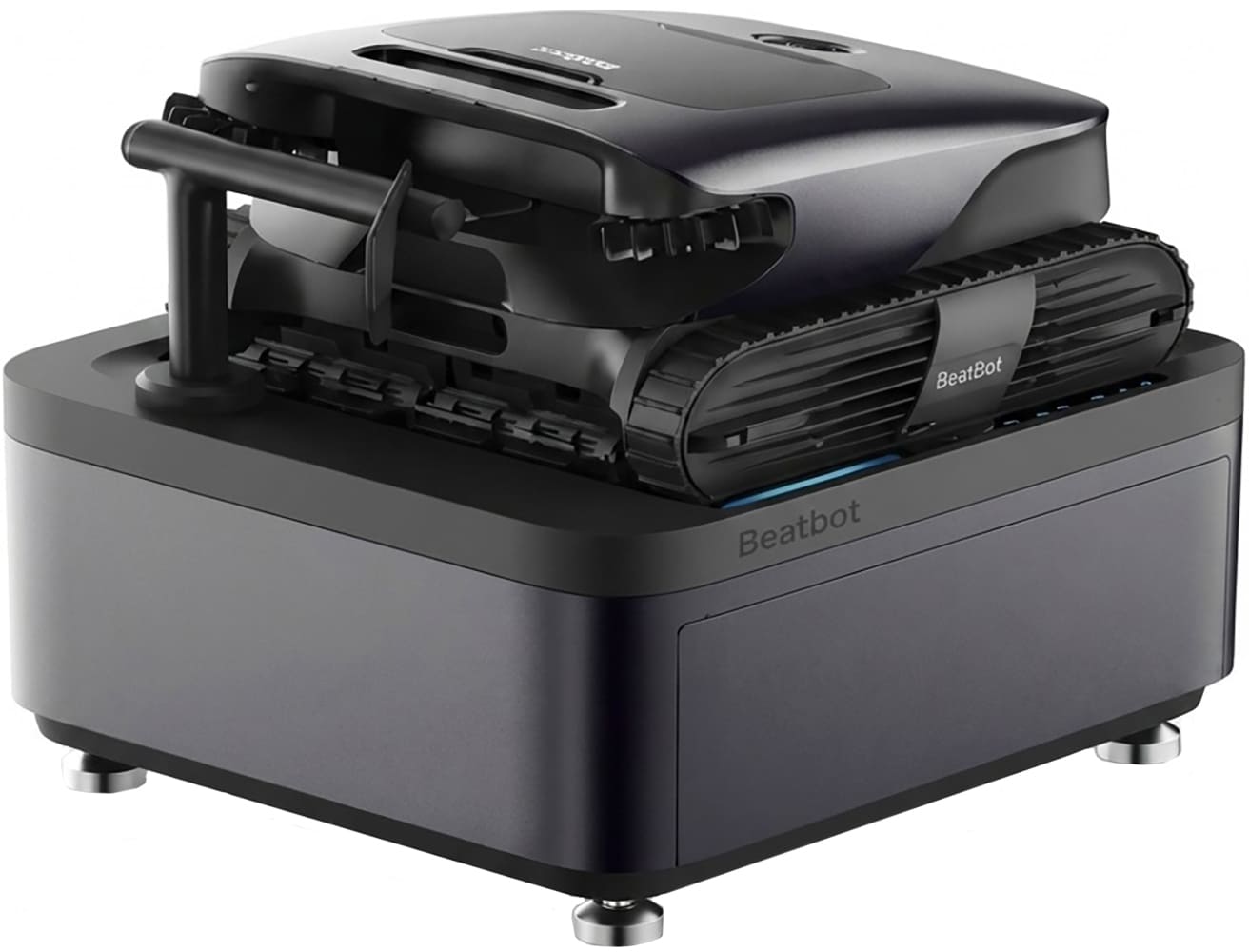 Керуйте пристроєм кнопками на корпусі або через застосунок Beatbot на смартфоні. У комплекті є станція самоочищення та зарядки: вона сама видаляє зібране сміття з контейнера й поповнює енергію акумулятора.