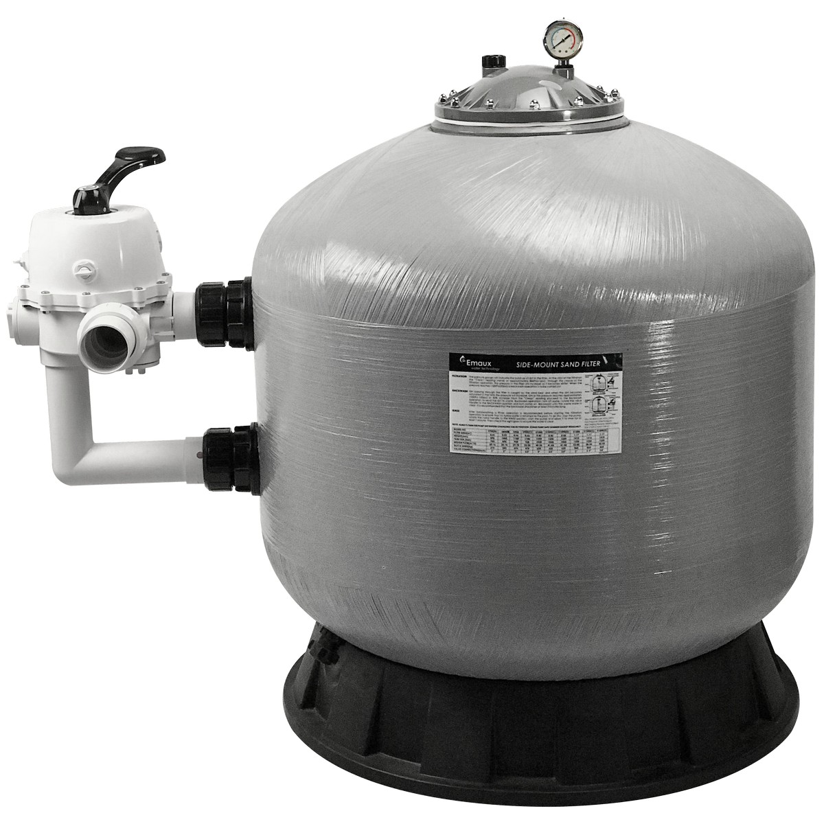 Боковий фільтр EMAUX S900 призначений для механічного очищення води в приватних басейнах та SPA. Обсяг рекомендованого басейну до 120 000 л. Корпус з полімеру посиленого скловолокном. Фінішне просочення корпусу для захисту від вологи й УФ. У комплекті з боковим 6-режимним краном, муфтами, манометром. Модель збільшеної потужності.