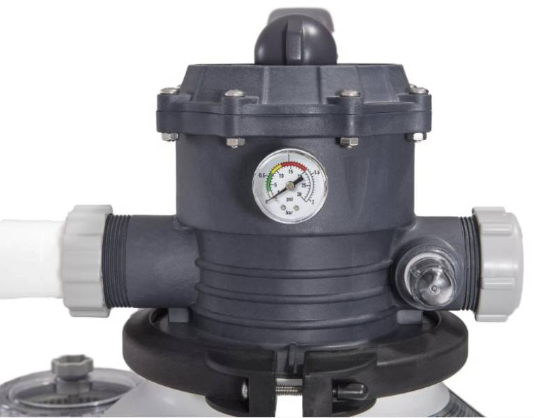 Установка має 6-ходовий клапан, який дозволяє власнику басейну виконувати фільтрацію, зворотне промивання, рециркуляцію, злив води і закриття системи. Установка також обладнана манометром, префільтром і потужним двигуном.