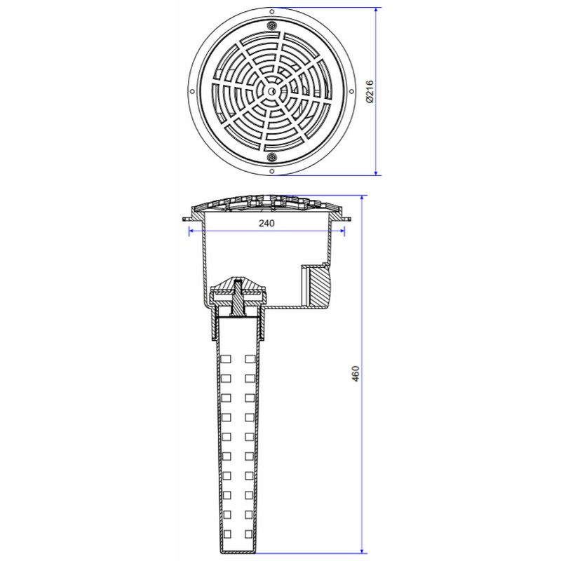 Рекомендується встановлювати у чашу басейну з бетонним покриттям. Основна частина та жолоб виготовлені з ABS пластику, куполоподібна кришка з ПВХ. Клапан стійкий до механічного впливу, ультрафіолету та хімічних реагентів. Комплектується трубкою для забору води.