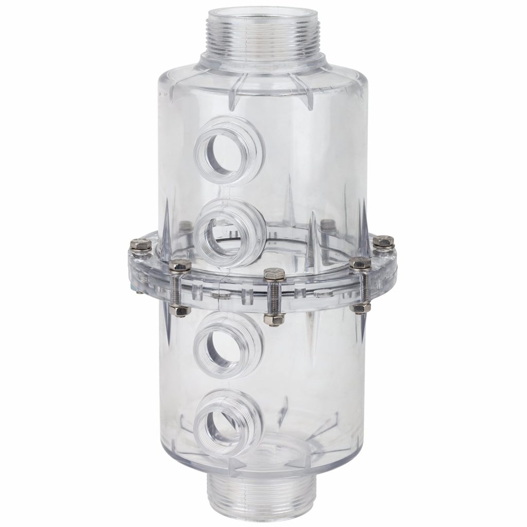 Колба іонізації для Aquascenic HD2 (на 4 электрода по 2″) використовується для лінійних вимірювань. Зразок води перенаправляється з основної труби в колбу, де датчик (зонд) визначає хімічний параметр, наприклад pH або RX.