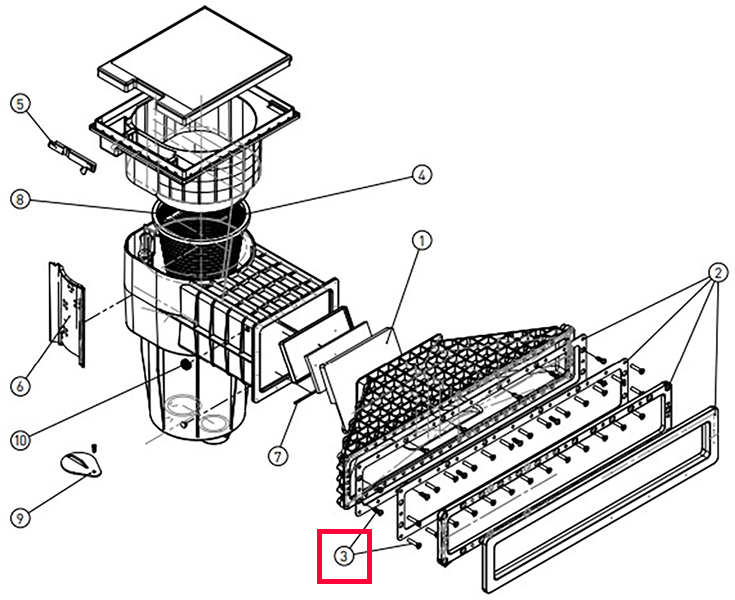 Комплект вставок фурнітури X-Line (12 + 28) для скімера Hayward X-Pro 600. Цей товар зображено на схемі під №3.