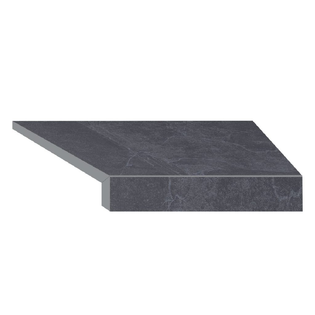 Кутовий Г-подібний елемент бортової плитки Aquaviva Ardesia Black, 595x345x50(20) мм (правий/45°)