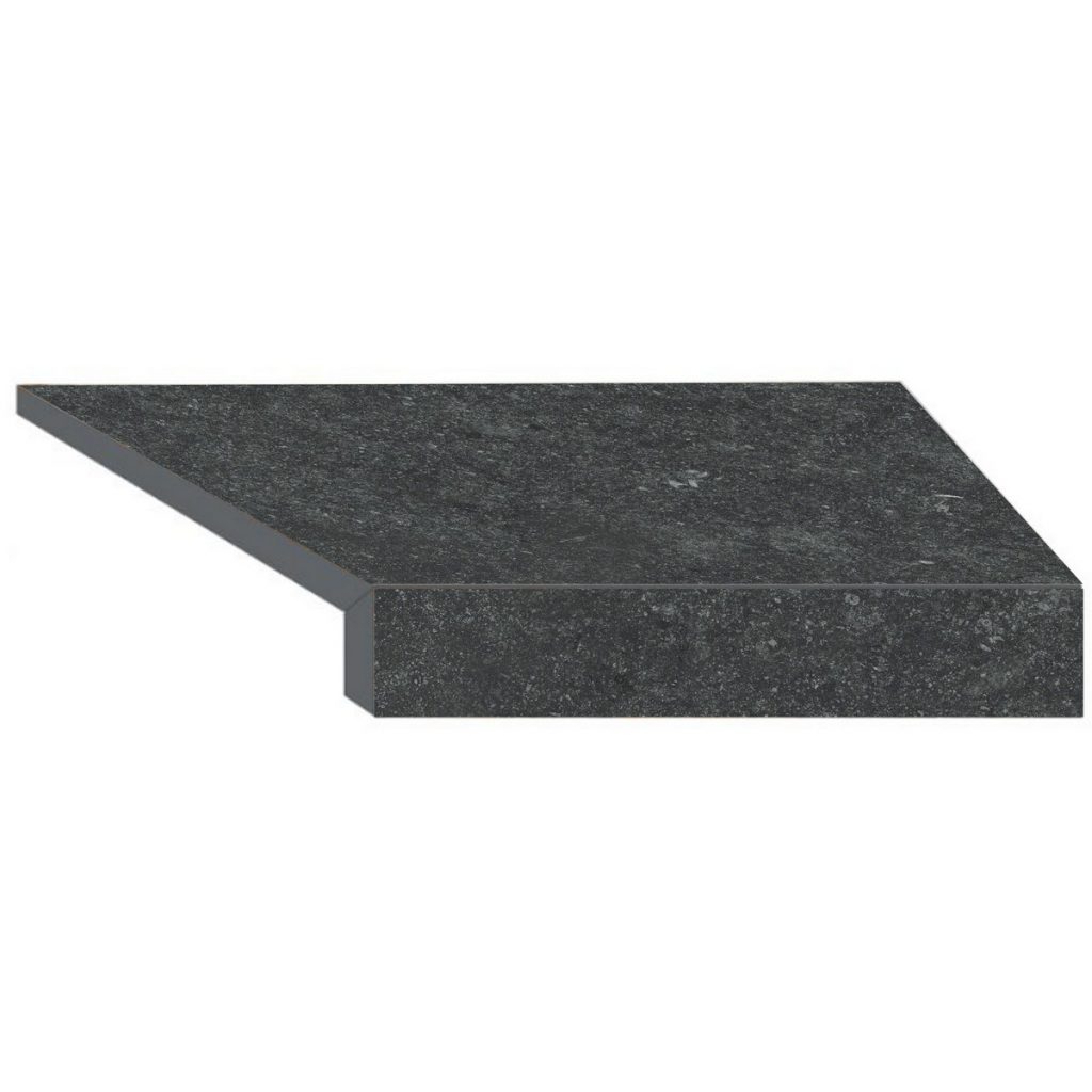 Кутовий Г-подібний елемент бортової плитки Aquaviva Stellar Dark Grey, 600x345x50(20) мм (правий/45°)