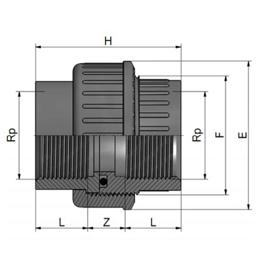 Муфта ПВХ Effast RERBOE050F розбірна із внутрішньою різьбою, 1.5″