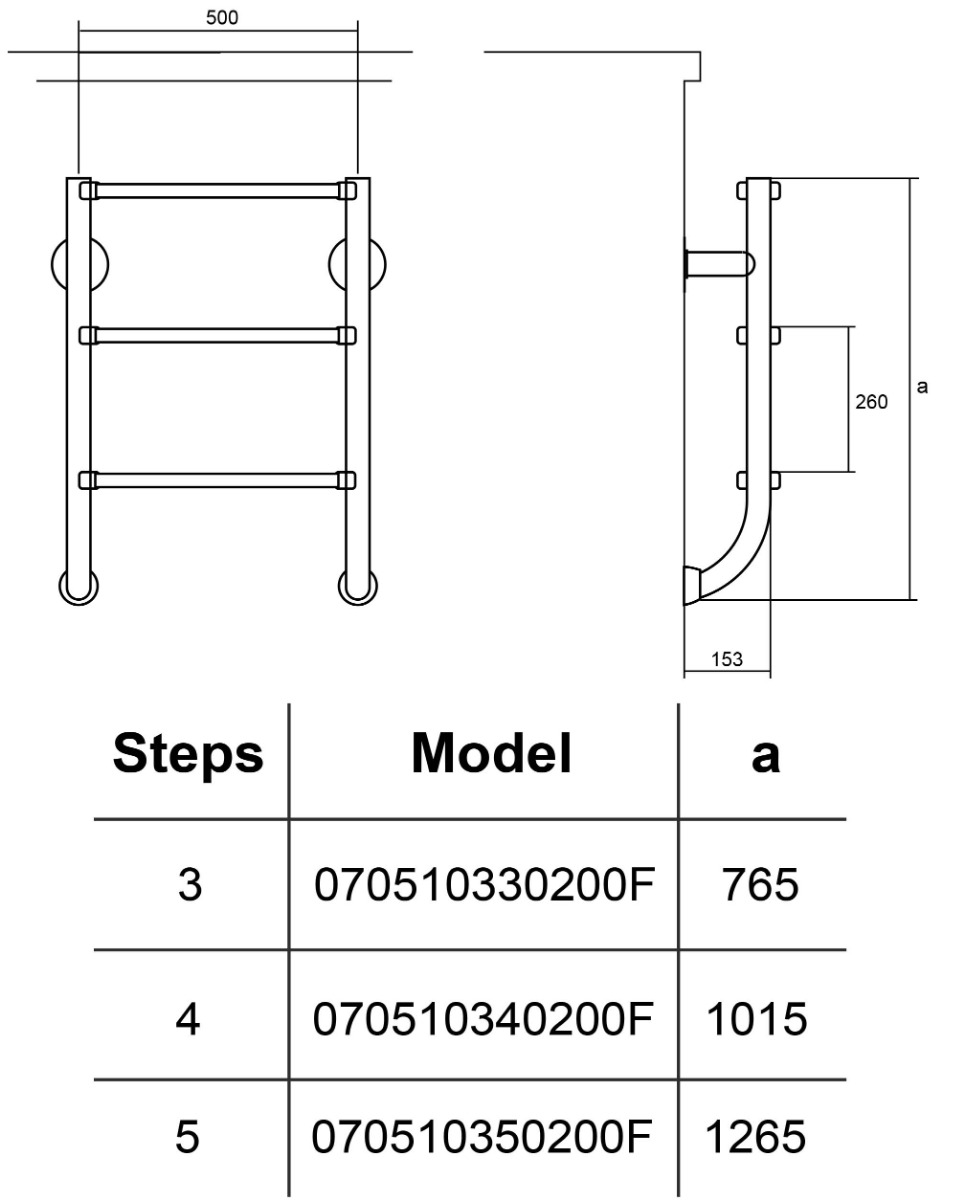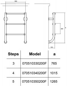 Нижня частина сходів для басейну Hayward IDP4 підходить для повністю занурених басейнів з вузьким бортиком. Сходи складаються з двох елементів (верхні поручні, нижні сходинки), які кріпляться окремо за допомогою анкерних болтів. Поручні кріпляться на поверхню бортика басейну, сходинки до стіни басейну. Нижня частина сходів не має кріплення, вона впирається в стіну через гумові вставки. Сходинки до труби фіксуються за допомогою болтів, передбачено полімерні накладки, що запобігають ковзанню ноги. Сходи виготовлено з нержавіючої сталі марки AISI-316, що забезпечує високу міцність і тривалий термін експлуатації виробів у воді плавальних басейнів. Поручень PD1 HF для сходів купується окремо.