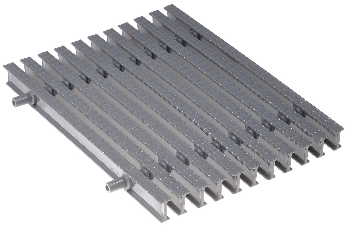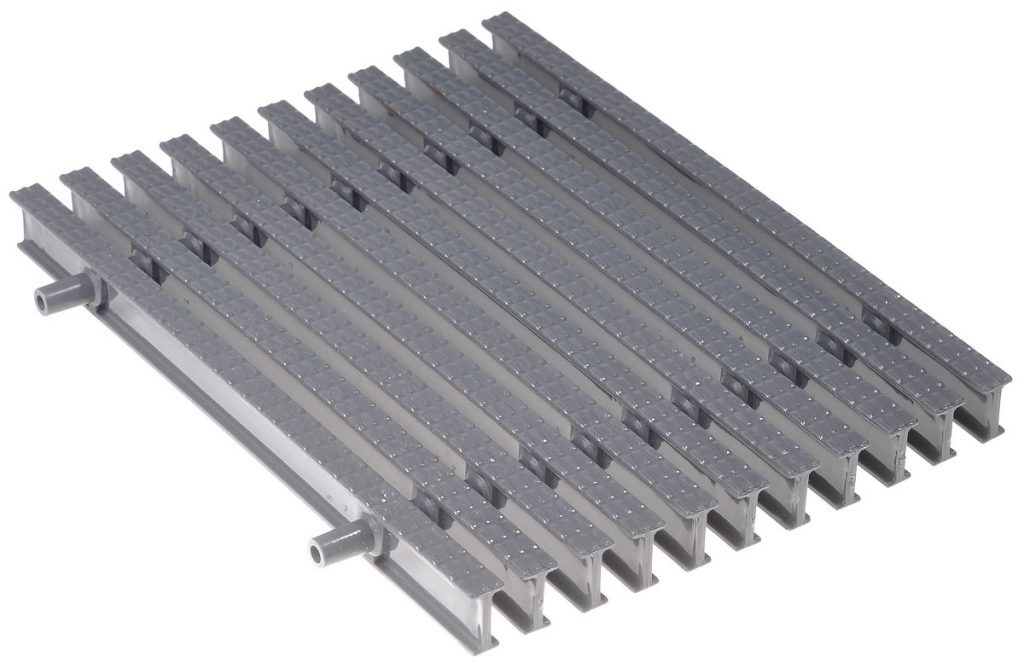 Переливна решітка Aquajoy KP HKE08-G Classik набірна (складається з окремих елементів). Естетична та надійна деталь для зони переливу басейну. Ефективно відводить воду, виступаючи елегантним елементом декору. Виконана з надміцного полімерного сплаву, який не боїться ультрафіолету, вологи та сильних морозів. Ідеальне рішення для цілорічного використання на відкритому повітрі. Ціна вказана за погонний метр. Решітка відвантажується кратно метру (48 модулів на 1 метр).