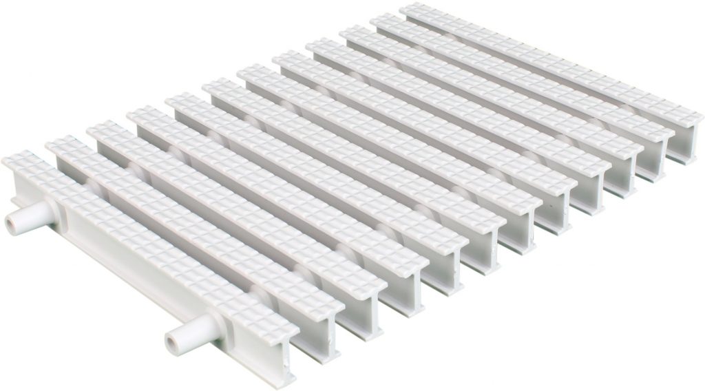 Переливна решітка Aquaviva. Серія KP HKE07 Classik. Набірна (складається з окремих елементів). Використовується для створення зони переливу у басейнах. Виконує функцію забору води, а також функцію декору. Деталь виготовлена з високоміцного полімерного сплаву, стійкого до УФ та вологості. Матеріал розрахований на цілорічне розміщення на вулиці навіть за умов мінусових температур. Ціна вказана за метр погонний. Решітка відвантажується кратно метра (46 модулів на 1 метр).