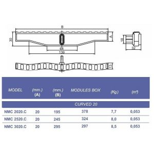 Переливна решітка Kripsol NMC 2020.C з центральним з’єднанням 195х20 мм призначена для використання в переливних басейнах будь-якої форми. Виконує функцію відводу води. Виготовлена з поліпропілену. Деталь стійка до механічного впливу, добре протистоїть УФ-випромінювання, впливу хімії, не боїться високої вологості і перепадів температури. Ціна вказана за метр погонний. Решітка відвантажується кратно метра (55 модулів на 1 метр).