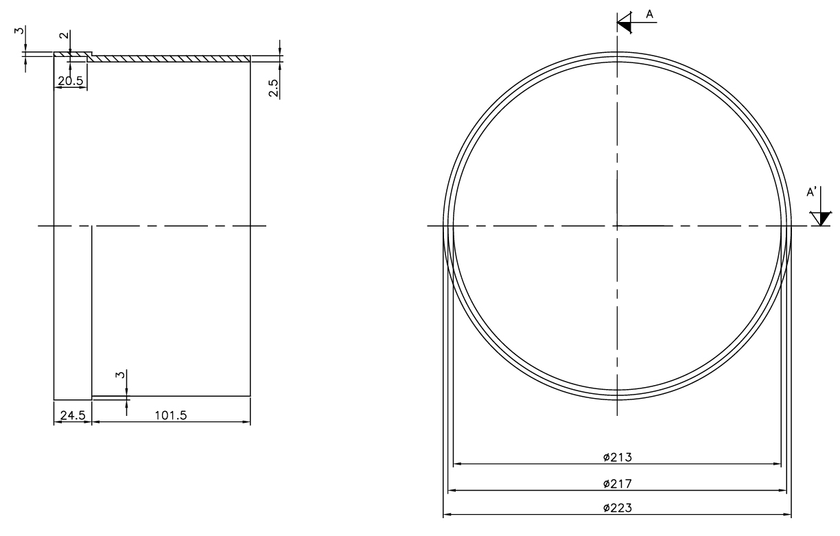 - Діаметр вгорі: 224×218 мм