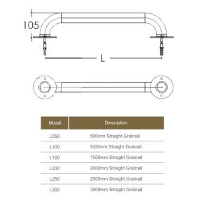 Поручень Emaux L150 призначений для підвищення безпеки і зручності користування басейнами. Виготовлений з полірованої нержавіючої сталі марки AISI-316. Поручні кріпляться до борту за допомогою фланців на болтах (з використанням пластикового дюбеля). Поручень можна розташувати по периметру чаші басейну в якості зони відпочинку для тих, хто купається на глибині. Можливе як горизонтальне, так і вертикальне розміщення..