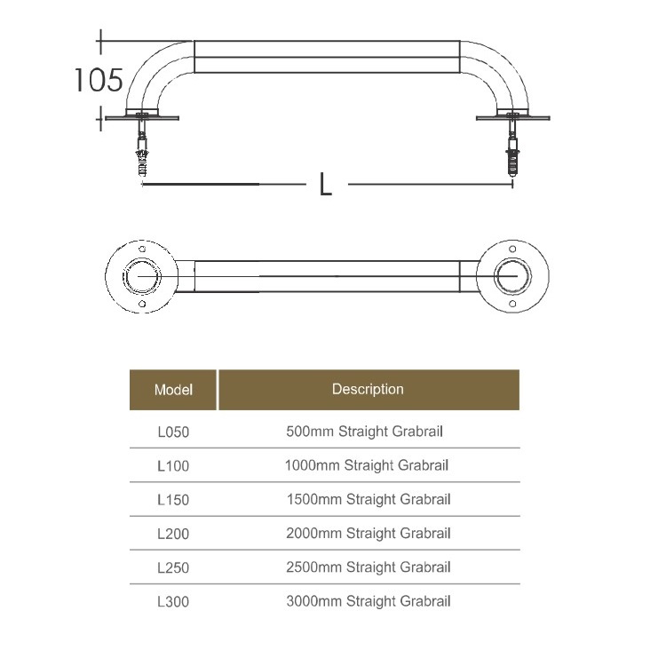 Поручень Emaux L200 призначений для підвищення безпеки і зручності користування басейнами. Виготовлений з полірованої нержавіючої сталі марки AISI-316. Поручні кріпляться до борту за допомогою фланців на болтах (з використанням пластикового дюбеля). Поручень можна розташувати по периметру чаші басейну в якості зони відпочинку для тих, хто купається на глибині. Можливе як горизонтальне, так і вертикальне розміщення.