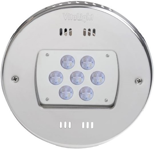 Монохромний світлодіодний прожектор Fitstar 4.40000020 використовується для освітлення басейнів. Корпус прожектора виконаний із бронзи RG та сталі AISI-316, що забезпечує його стійкість до корозії. Рекомендується встановлювати прожектор на глибині 600 мм нижче рівня води. Якщо рівень солі у воді перевищує 5 г/л або хлору – 1 г/л, краще використовувати бронзовий світильник для забезпечення довговічності та ефективності.