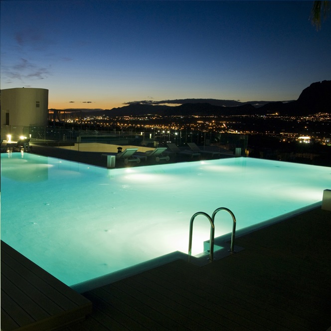 Галогенний білий прожектор KRIPSOL РНМ300.С для великих басейнів. Виготовлений з ABS пластику стійкого до УФ і хімічного впливу. Екран прожектора з прозорого ударостійкого полікарбонату. Легка установка. Поставляється з закладною нішею. Відповідає стандарту водостійкості IP68. Ідеальний для внутрішніх і зовнішніх плавальних басейнів де потрібно потужне надійне освітлення.