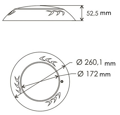 Ключова перевага моделі – накладний монтаж. Встановлення виконується без підготовки ніші: прожектор кріпиться безпосередньо на рівну поверхню стіни. Корпус із класом захисту IP68 повністю герметичний і стійкий до корозії, що робить модель придатною для постійної роботи у воді.