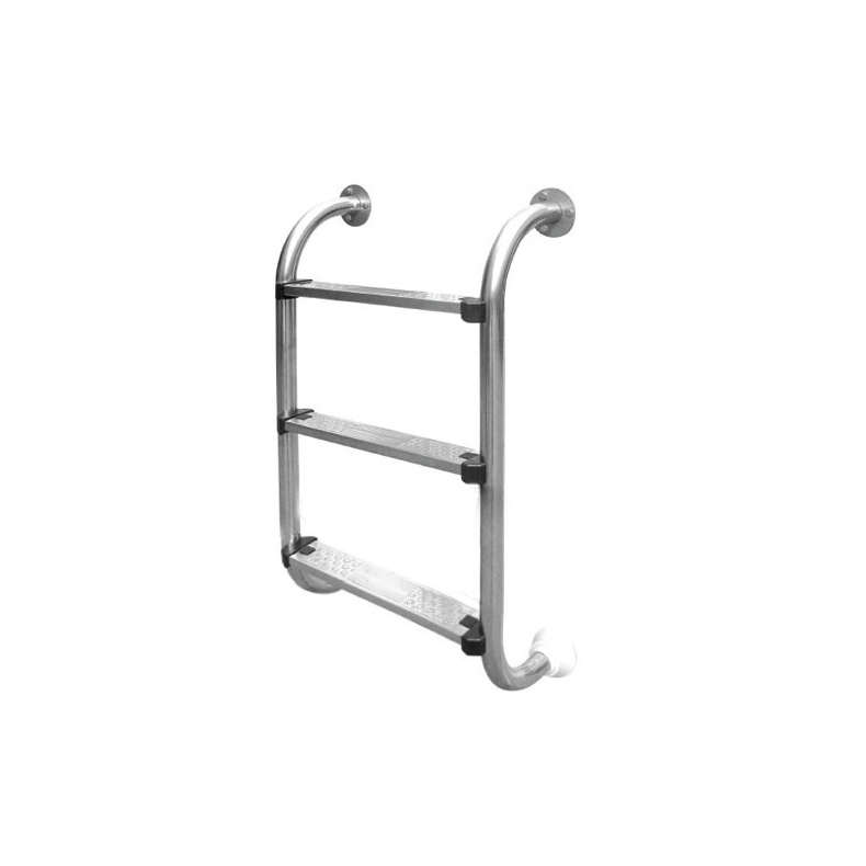 Сходи Emaux BHK315-SR для зручного і безпечного спуску в басейн. Являє собою нижню частину сходів без верхніх поручнів і використовується в заглиблених басейнах, де немає можливості встановити цільні сходи стандартного типу. Виготовлена з полірованої нержавіючої сталі марки AISI-304. Сходи кріпляться до стіни за допомогою допоміжного кріплення з болтами. Нижня частина сходів впирається в стіну басейну прогумованою заглушкою. Сходинки кріпляться до поручнів за допомогою болтів. Може використовуватися окремо, проте оптимальніше всього використовувати в поєднанні з поручнями типу ARV, ARB, ARC.