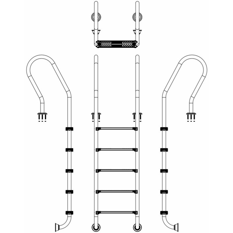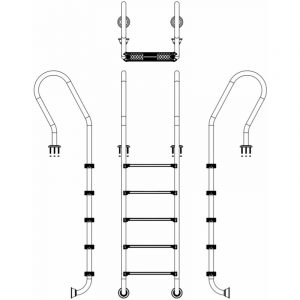 Сходи Emaux Mixta SFF515-SR (5 сх.) призначені для зручного та безпечного спуску в басейн. Поручні і сходинки виготовлені з полірованої нержавіючої сталі марки AISI-304. Поручні кріпляться до борту за допомогою фланцевих з’єднань. Нижня частина сходів впирається в стіну басейну прогумованою заглушкою. Сходинки кріпляться до поручнів за допомогою болтів і мають протиковзкі накладки. У комплекті поставляються кріпильні елементи.