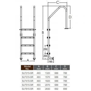 Сходи Emaux Standard SLF315-SR (3 сх.) призначені для зручного та безпечного спуску в басейн. Поручні і сходинки виготовлені з полірованої нержавіючої сталі марки AISI-304. Поручні кріпляться до борту за допомогою фланцевих з’єднань. Нижня частина сходів впирається в стіну басейну прогумованою заглушкою. Сходинки кріпляться до поручнів за допомогою болтів і мають протиковзкі накладки. У комплекті поставляються кріпильні елементи.