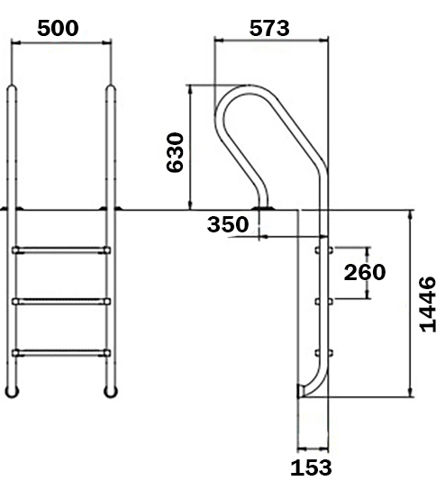 Сходи з поручнями Flexinox Mixta призначені для заглиблених басейнів з вузьким бортом. Оснащені п’ятьма сходинками з протиковзними пластиковими накладками. Завдяки гумовим заглушкам, кріплення не порушує гідроізоляцію чаші басейну. Виготовлені з нержавіючої сталі AISI 316L, стійкої до корозії, впливу ультрафіолету і хімічних реагентів. Максимальне навантаження на сходи – 150 кг. Елементи кріплення поставляються в комплекті.