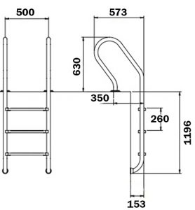 Сходи з поручнями Flexinox Mixta призначені для заглиблених басейнів з вузьким бортом. Оснащені чотирма сходинками з протиковзними пластиковими накладками. Завдяки гумовим заглушкам, кріплення не порушує гідроізоляцію чаші басейну. Виготовлені з нержавіючої сталі AISI 316L, стійкої до корозії, впливу ультрафіолету і хімічних реагентів. Максимальне навантаження на сходи – 150 кг. Елементи кріплення поставляються в комплекті.