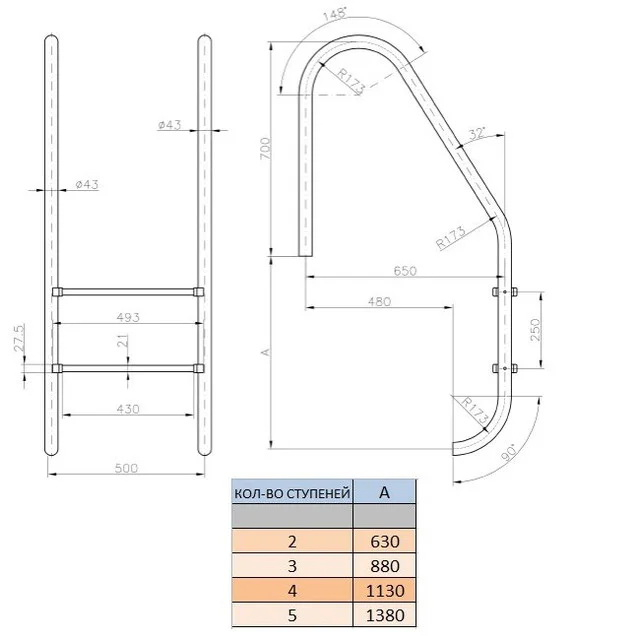 Сходи для басейну Kripsol Standard IP 5.D (5 сходинок), AISI-316