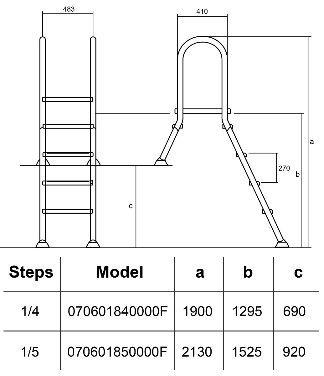 Сходи встановлюються над бортом басейну і не кріпляться до його основи, що дає змогу встановити їх у будь-якому місці. Одна частина сходів спирається на дно басейну, інша на поверхню біля борту.