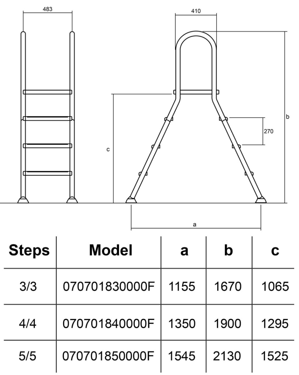 Сходи для наземних басейнів Hayward (5 сходинок), AISI-304