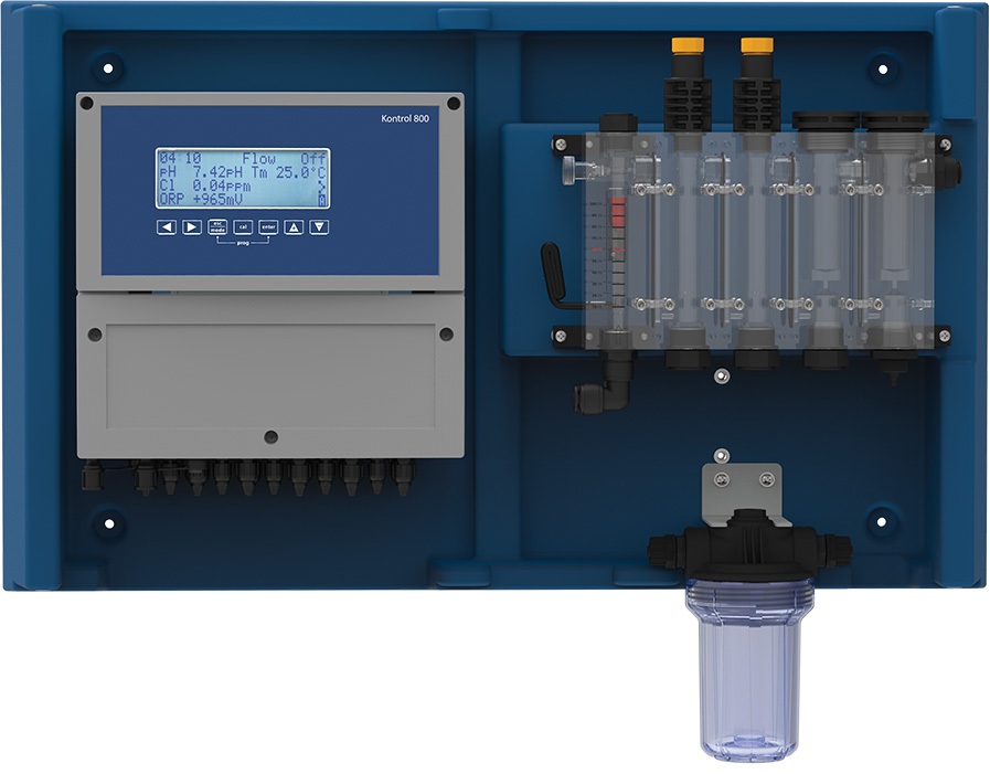 Станція контролю якості води Aquaviva Kontrol Panel 800 PH/RX/CL – це універсальний багатопараметричний контролер для автоматичного управління хімічними показниками води в приватних і громадських басейнах. Забезпечує вимірювання і регулювання рівня pH, значення Redox (ОВП), а також концентрації вільного, зв’язаного і загального хлору. Станція оснащена РК-екраном з механічними клавішами, системою автоматичного дозування реагентів, сигналізацією при виході за межі норми і функцією реєстрації даних. Підходить для басейнів з солоною або прісною водою. Доставляється в попередньо змонтованому вигляді на міцній антикорозійній панелі, що спрощує установку. Потенціостатичний датчик для вимірювання хлору не входить до комплекту і купується окремо.