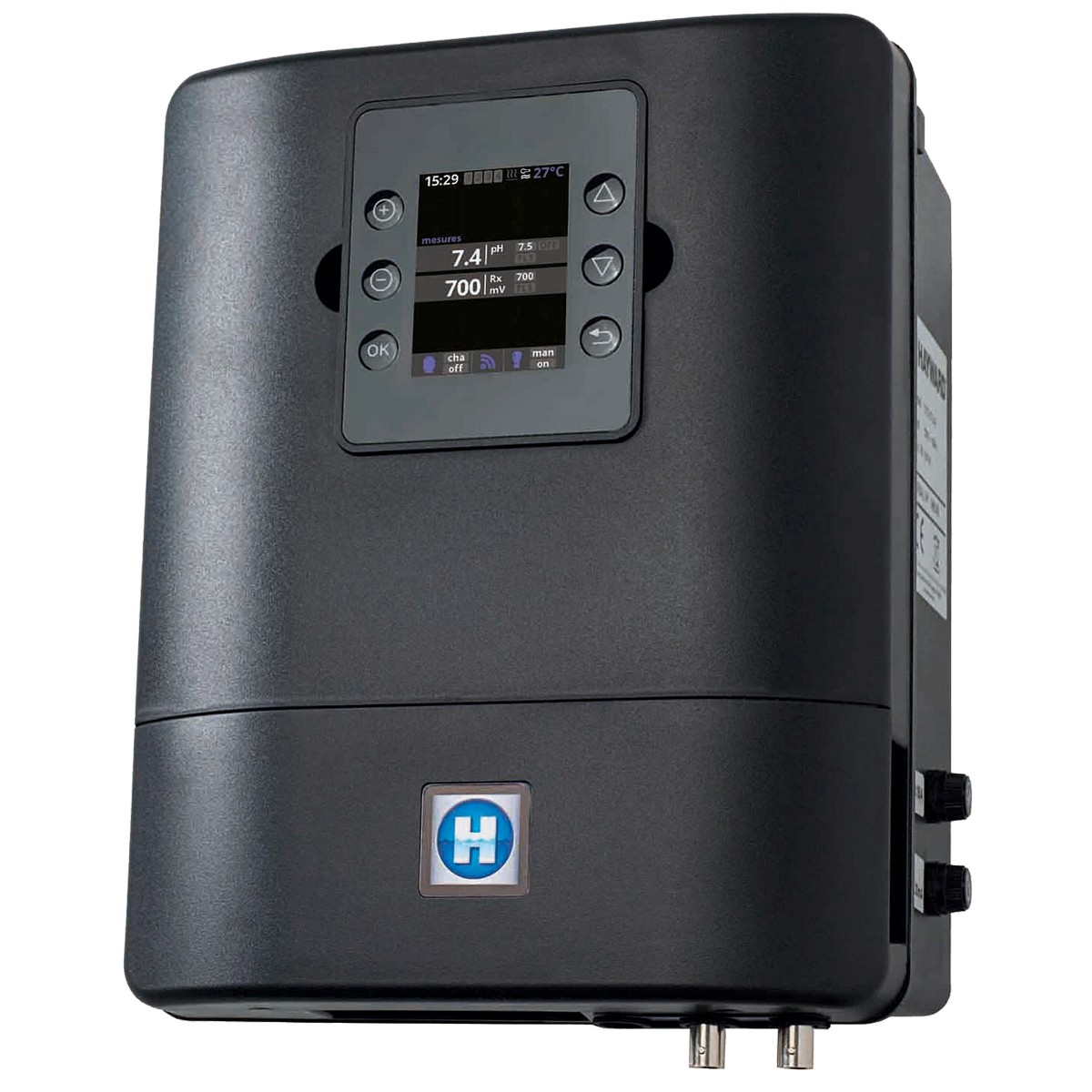 Також пристрій дозволяє регулювати рівень pH, ORP і вільного хлору води. Наявність можливості 30-денного запису даних з опцією видаленого управління Wi-Fi. Комплектується термодатчиком. Електроди і модуль Wi-Fi отримуються додатково.