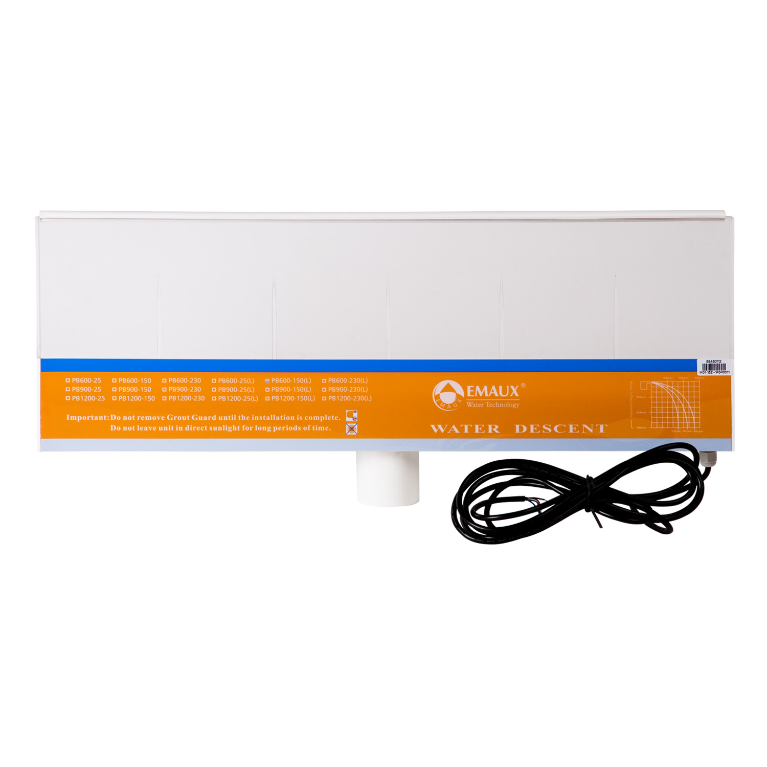Стіновий водоспад зі світлодіодним підсвічуванням Emaux PB 600-150 (L). Забезпечує циркуляцію води та декорує бассейн. Виготовлений з акрилу. Спокійне падіння води. Налаштування кольору за допомогою панелі або пульта.
