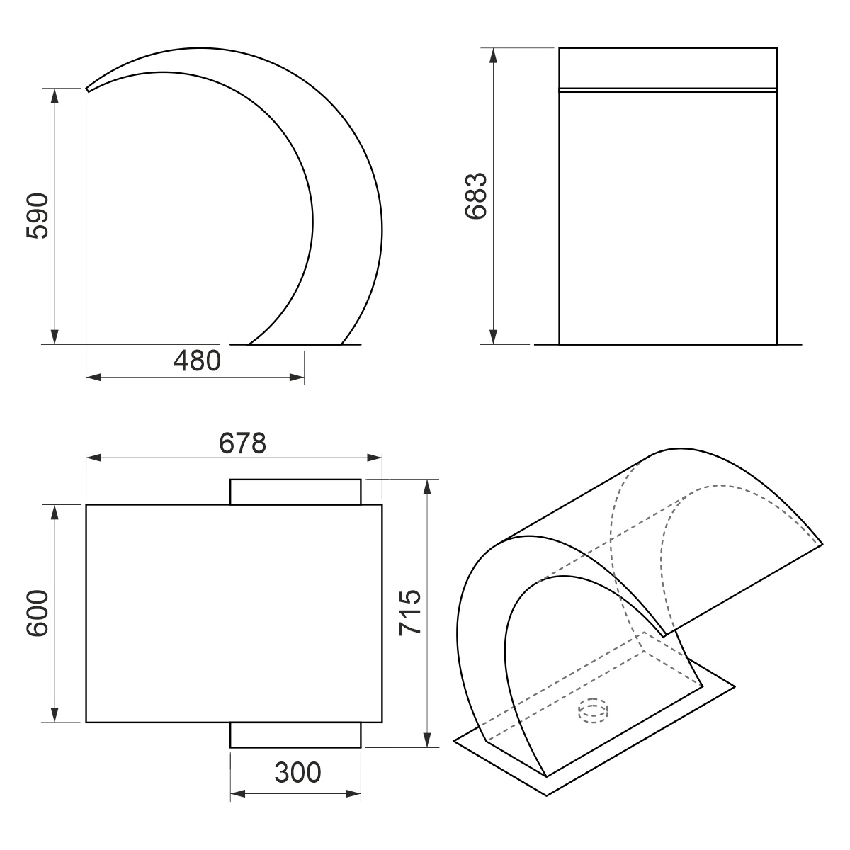 Водоспад Aquaviva Місяць AISI 316 (680×600 мм)