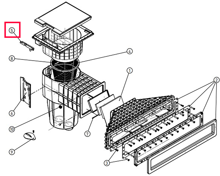 Засув кришки X-Line для скімера Hayward X-Pro 600. Цей товар зображено на схемі під №5.
