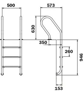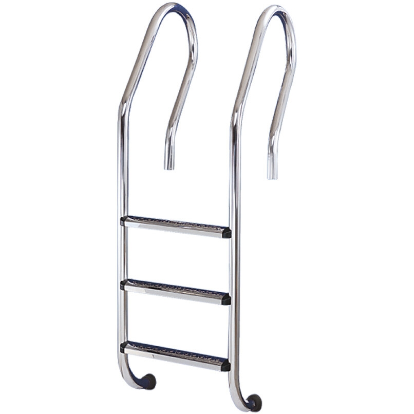 Сходи з поручнями Flexinox Mixta для заглиблених басейнів з вузьким бортом. Оснащені трьома сходинками з протиковзними пластиковими накладками. Завдяки гумовим заглушкам, кріплення не порушує гідроізоляцію чаші басейну. Виготовлені з нержавіючої сталі марки AISI 304, стійкої до корозії, впливу ультрафіолету і хімічних реагентів. Максимальне навантаження на сходи 150 кг. Кріпильні елементи поставляються в комплекті.