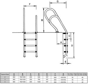 Сходи для громадського Golfinho E5087.3 – це ідеальний варіант для повністю заглиблених басейнів. Сходи виготовлені з труби діаметром 43 мм. Оснащені сходинками з протиковзними пластиковими накладками. Завдяки гумовим заглушкам, елементи кріплення не порушують гідроізоляцію чаші басейну. Виконані з нержавіючої сталі марки AISI 316, стійкої до корозії, впливу ультрафіолету та хімічних реагентів. Кріпильні елементи постачаються в комплекті.
