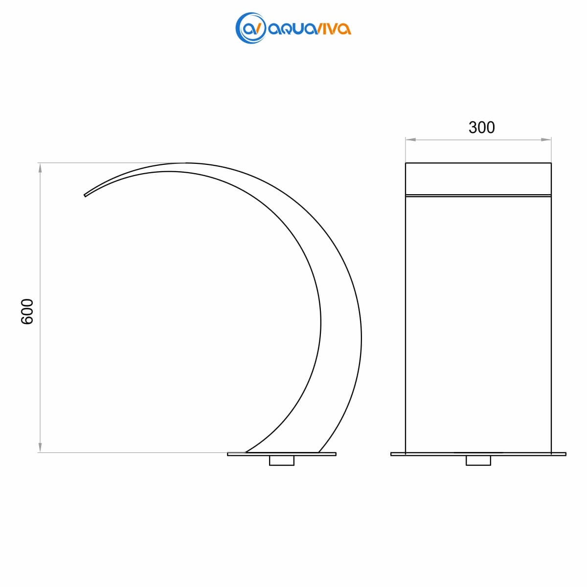 Водоспад Aquaviva виконує декоративну, масажну та циркулючу функції. Призначений для розміщення біля борту басейну. Виконаний з прозорого акрилу товщиною 1.5 мм. Матеріал виготовлення має відмінні антикорозійні властивості та високу стійкість до впливу ультрафіолету і хімічних реагентів. Оснащений RGB LED підсвічуванням.